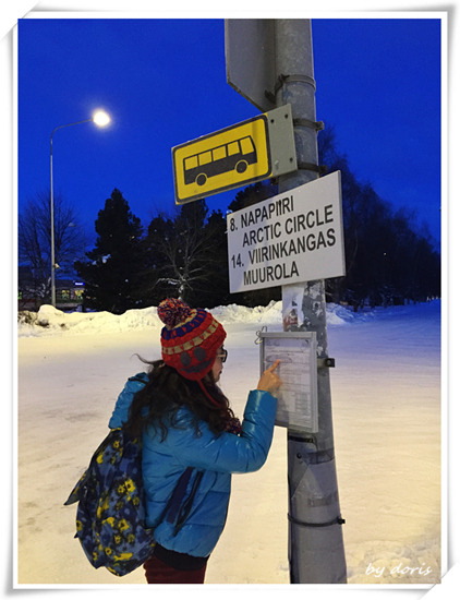 地上的积雪很结实,并不滑,大家深深吸了几口这北极圈的空气后,赶紧去寄存了行李,开始寻找前往圣诞老人村的8路汽车