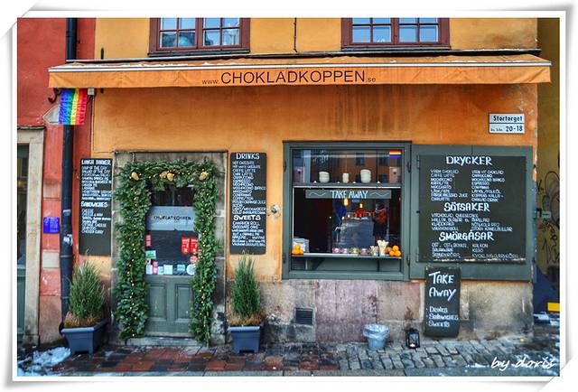 老城广场边有两栋荷兰式砖红和泥黄窄楼,十分醒目,这是两家姊妹店 Kaffekoppen 和 Chokladkoppen,一家卖咖啡一家卖巧克力,据说连英国顶级厨师 Jamie Oliver 都推崇备至。