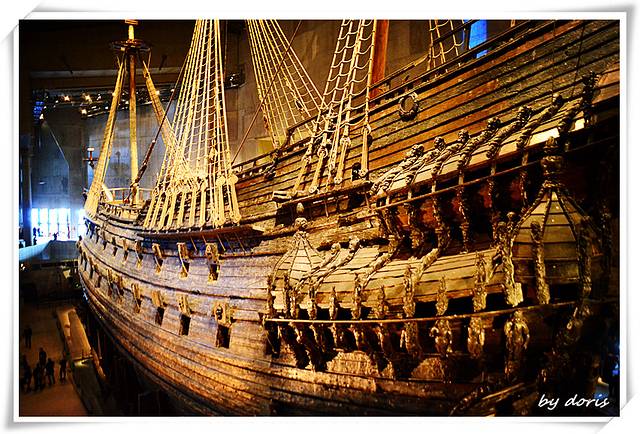 博物馆内的瓦萨号沉船之所以出名是因为它是现存历史最久的完整打捞上来的沉船,1628年,作为当时实力极其强大的瑞典,为参加德意志三十年战争,于8月10日在皇宫附近的码头踏上它的处女航,不幸的是还没驶出一公里船便沉没了,直到300多年后才重见天日,据打捞上来后的研究报告说沉没是因为当时压舱用的石块装得不够多而导致翻船,真是有点儿乌龙.