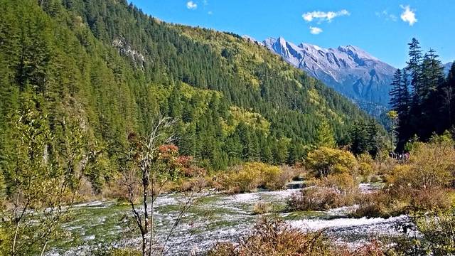 九寨沟的秋季是最美的,也是最旺的,所以在出发前一定要做好准备,我们是在成都包了辆车去的,是到成都前在去哪儿网上的当地人找的一家叫大脚的,这家不错,车好,服务好。因为考虑到有老有小,所以选了辆好点的商务车。从成都到九寨沟开车一般需要8个小时,路况很好,不过我们运气不好,路上遇到两次堵车,到沟口酒店用了11个小时!我们预订的酒店离景区大门大概4公里这样,第二天为了早点到景区我们6点就出发了,夸张哦!但这4公里却用了1个小时,主要是太旺了!如果计划得早建议住景区门口唯一的一家酒店,叫九寨沟风景名胜管理局贵宾楼饭店,早上拿票方便,也不用那么赶,而且可以景区一开门就进去,太爽了!在九寨沟里游览建议提前在网上预订,到景区只需要在团队窗口取票就可以了,记得把车票一起预订了,九寨沟里是通过观光车往返景点之间的。 我们第二天游览了黄龙,游黄龙有意外收获。之前因为我们的司机建议我们先游黄龙,谁知堵车没去成,但在去黄龙的路上确遇上了云海,太美,而且我们要从云海穿过,第一次感觉离天是那么近,触手可及!第二天一早我们出发去黄龙,然后又遇到下雪,惊喜不断啊!黄龙景区很多游客说不好看,特别是看过九寨沟以后,其实主要原因是他们可能跟团游的,我们发现下午4点左右还有团队进景区,但这个时间我们已经一路下山了,要想好好的游览黄龙必须早上进去,我们早上从沟口出发到黄龙也蛮晚了,必须坐缆车上山然后一路走下来,9点半左右进景区,下午4点才出来,结果到成都已经晚上11点了!如果时间允许,建议住黄龙景区的酒店,就在缆车口,很方便!