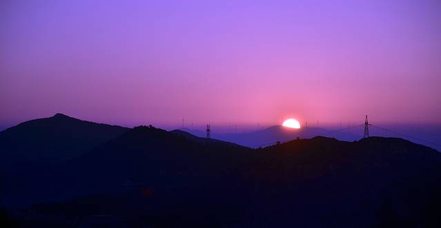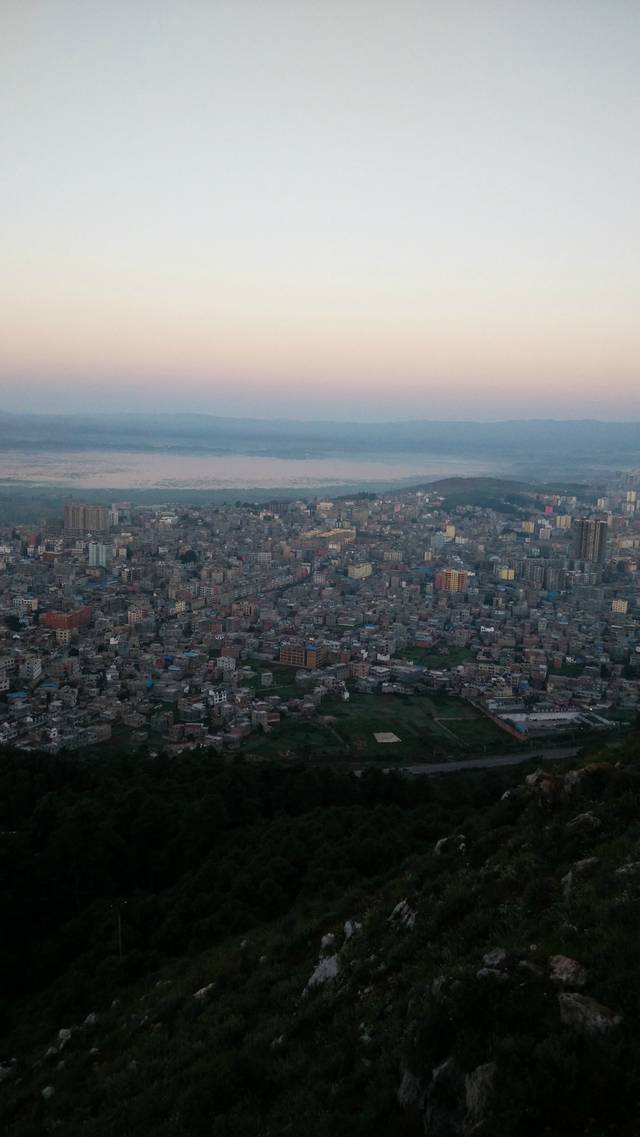 由于当天下午我们就要坐车回宜宾了,所以只有半天的时间游玩。远一点的少数名族聚居地是去不了了,但是也不能浪费这半天。所以我们觉得去威宁县的山顶看日出,看县城和草海全貌。5点起床,也是联系之前的师傅,包车上山。大概6点多一点,天色很暗,但是山顶上居然就已经有好几个晨练的人啦。山顶气温有些低,深深地觉得薄外套一点都不给力,但还是挡不住日出的魅力。