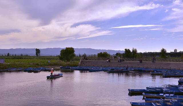 小船缓缓的从岸边像湖中间驶去,最初映入眼帘的是湖里茂盛的蒲草,长的高高的,像若隐若现的屏风一样。蒲草中间,时不时能听到小动物的叫声,很多野鸭子正在里面嬉戏。湖里的水草随波逐流,在水里招摇,让人不自觉的会想起徐志摩的《再别康桥》“寻梦?撑一支长篙,向青草更青处漫溯;满载一船星辉,在星辉斑斓里放歌……”