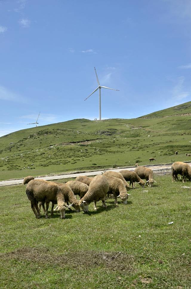 百草坪的人不多,感觉一个人就可以承包一个小山坡。走累了,拍累了,可以坐在草地上,躺在草地上小憩一会。清风微微的吹过,牛羊在眼前吃草,一望无边的草原,高高的风车,蓝蓝的天,我喜欢这样的广阔和宁静。