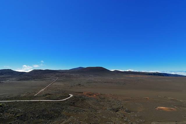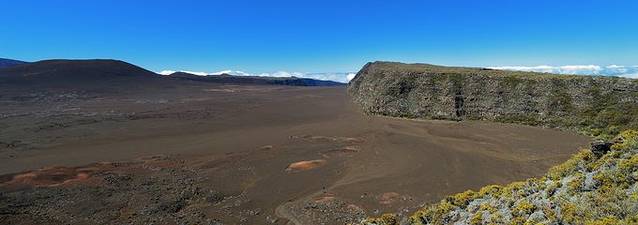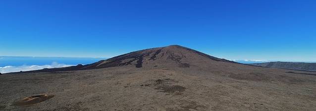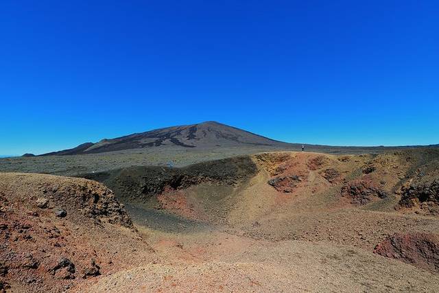 累啊 真心累。我们一行人走走停停,偶尔拍个照,从中午12点多走到接近7点才回来,最后还把脚给崴了。从balcon du dolomieu观景台走到富尔奈斯火山口行程14公里,官方估计往返5小时。海拔落差为500米。从观景台步行20分钟首先到达福凯火山口的底部然后行走大约半小时到达被称为罗斯蒙特教堂的岩穴。之后向左拐弯一直沿着地上的白点走大约2小时候就会到达富尔奈斯主火山口。此处没有护栏,可以清楚看到350米深的火山底部。提醒大家注意的是火山周围环境比较严酷,水分会被急速蒸发,会强烈感觉到脱水。而且由于火山灰的原因,我们一行人从后半部开始一直感觉肺部非常不舒服。走在火山周围的感觉便是来到了外星球,不到实地不会有如此强烈的感觉,一切的环境,生物都与平时所习以为常的大不相同。
