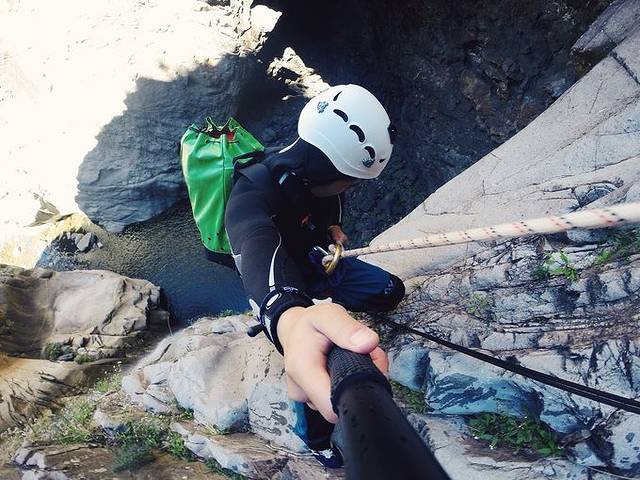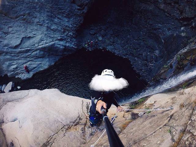 这是我第二个推荐的项目。战胜恐惧 享受刺激与征服。会有专业领队带领先攀上山顶然后再顺溪而下,中间穿插各种跳跃,跃入天然水池以及抓着绳索沿着峭壁下降。我参加的初学者经典线路,攀上山顶的这条路已经是比较险峻,中间一段路基本都没有踏脚的地方,是利用峭壁上的绳索一步一步往上攀。攀上山顶后,分为3段下降,分别为45米,25米,35米。最后还有个9米左右的跳瀑布(此为选择性项目)。我经过联系比较选择的是APARKSA MONTAGNE这家机构,50欧/人,店主英语还不错。