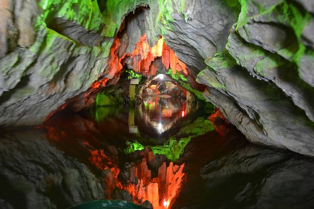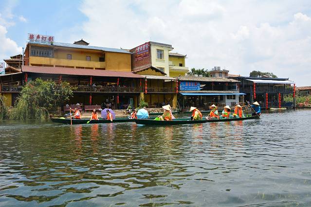在风景区内购买200元的景点线路票(观音洞、火把洞、仙人洞、打水仗)。其实,其实,我们买错景点线路票了,原先是想买260元的(双岬山码头购买)坐在有蓬布的船里悠闲的观赏普者黑风景的,哎,哎。(友情提示,这三个洞吧,一般般,仙人洞进洞前的水倒是把我给惊艳了)