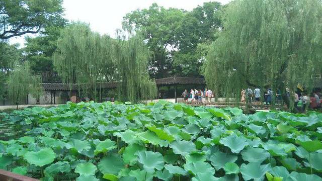 Tips:拙政园4:30以后免门票,晚上6:00闭馆,所以可以算好时间去观赏,免去90元的门票费。荷花在7月就开放了,我们7月底到达的话基本都只有荷花的叶子了。由于拙政园就在住的地方附近,所以第二天我们直接步行去拙政园,这次自作聪明咧,买了糕点脚爪进去啃,结果太热了,人也多,玩了会就出园了,还有时间就在外面吃了午饭。傻了吧!