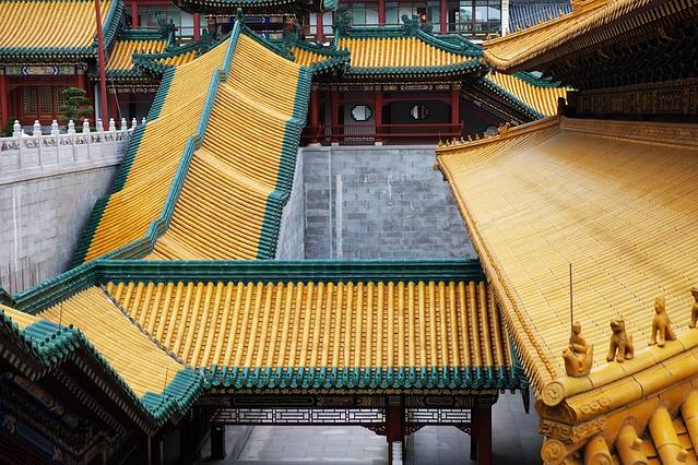 宝陀讲寺中轴线主体建筑采用北方明清宫廷式建筑风格,严谨中透着不可侵犯的威严,东西两侧建筑采用南方古建筑风格,为这处神圣之地增添了几许亲和婉约的气息。整个建筑设计很得体,即非常壮观,又不奢华做作。唯一的遗憾是建筑太新,人气不旺,里面非常冷清,有点像新落成的影视城。
