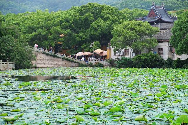 普济禅寺山门前的海印池,是普陀山上最美丽的地方之一。海印池始建于明代,也称放生池、莲花池。原是佛家信徒在此放生之池塘,后植莲花池。