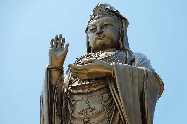 都说去普陀山不去洛伽山,等于只烧了半枝香,这里是观音菩萨修行成道的地方,大悲殿后院水晶宫里的滴水观音非常有名,圆通宝殿的送子观音和大觉禅寺的送子观音,也是求子的夫妻必来朝拜的。