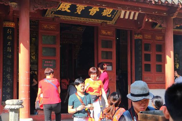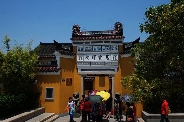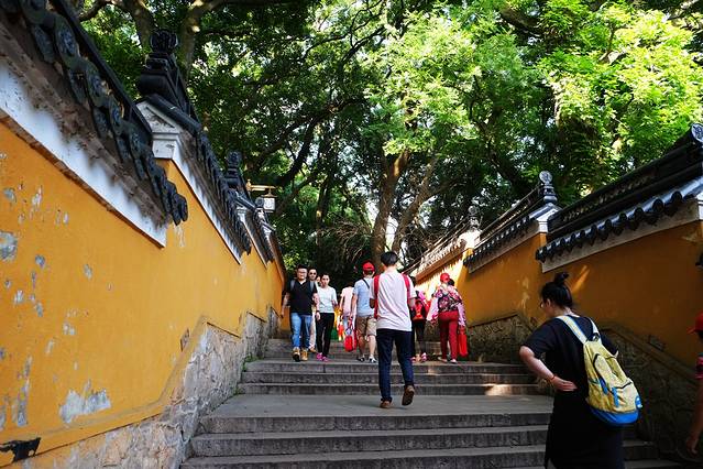 圆通禅林修建在山坡之上,给人的感觉就是庭院深深。我们进去的时候刚好有旅行团路过,我听到导游说这里也叫圆通庵,也就是尼姑庵,里面什么都没有,不值得进去,要大家赶紧去下一个景点。有个游客往上走了几步,犹豫着想进去看看,导游连劝阻带威胁,把那人叫下来,然后一起走了。