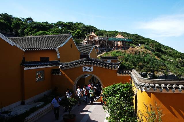 洛迦山离普陀山只有7海里,很快就到了。上来后跟着人流走就行,只有一条向上的山路,山并不高,前一段没有寺庙和景点,距离比较远,后一段寺庙景点集中。