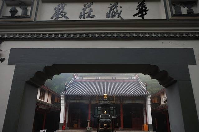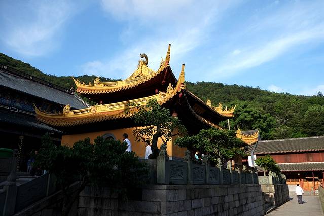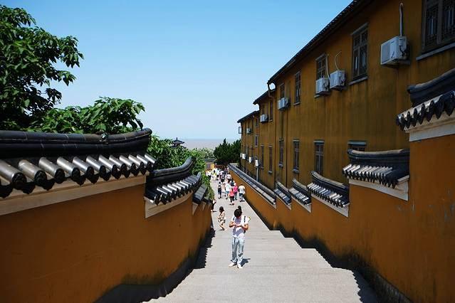 宝陀讲寺建在庐干庵的旧址,规模宏大,可以从大门沿着殿堂一层层的走到最高处,也可以从旁边的廊道直接登顶。