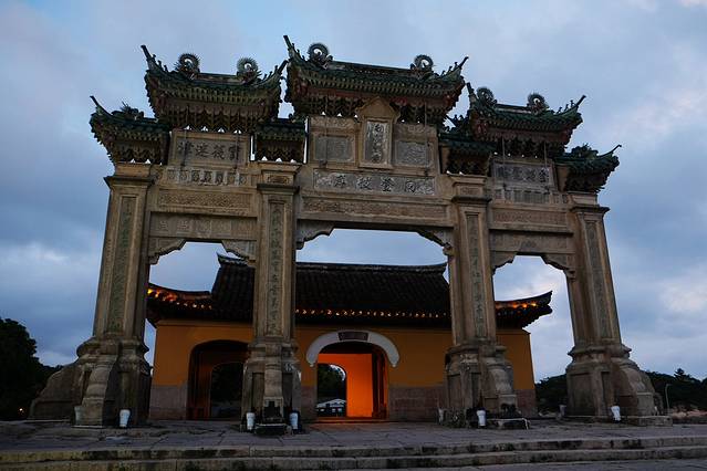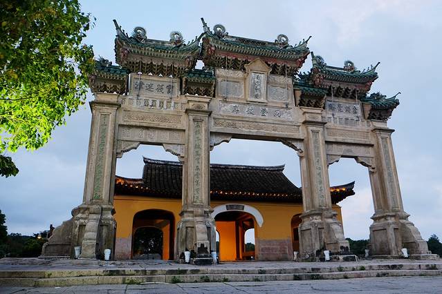 这时候差不多六、七点钟,要是还有体力的话,继续徒步去西天景区,这里景点也很多,寺庙基本都关门了,可以看看观音古洞、二龟听法石、磐陀石、心字石、西天门、千年古樟等等,穿过西天景区就又到了普济寺,旅游巴士已经停运了,只能步行回码头。如果体力不够,肯定要放弃西天景区。