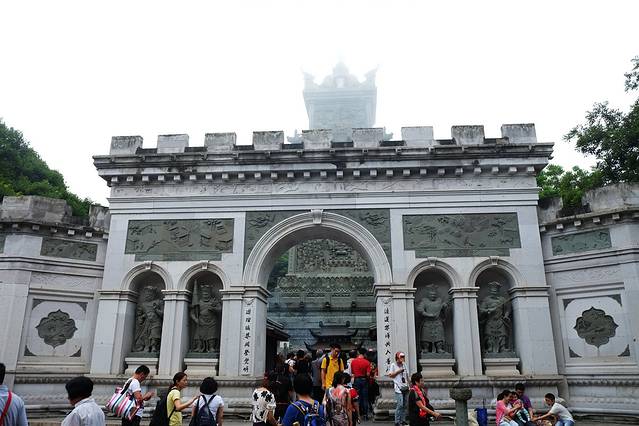 继续坐旅游巴士到佛顶山索道,这里有新建的宝陀讲寺和万佛宝塔,气势恢宏,很值得一看。宝陀讲寺依山而建,面积不小,亭台楼阁,非常漂亮,爬到最高处还不算太费力。万佛宝塔在宝陀讲寺对面的山坡上,从讲寺的偏门出来到山脚下的牌坊,台阶比较陡,爬起来比较耗费体力,这里全部游览完需要花一点时间。