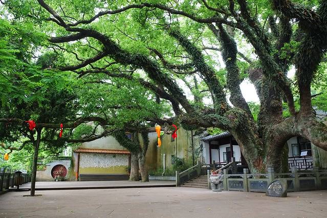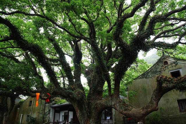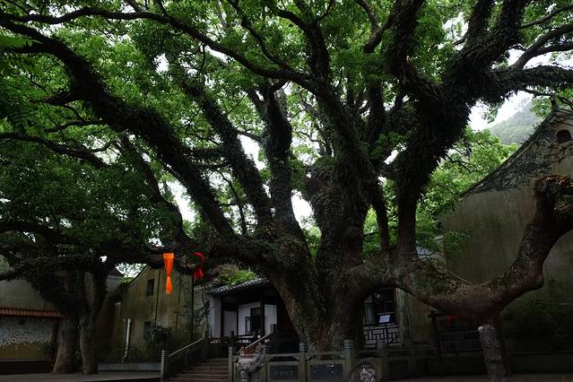 这棵古樟树经历了千年的沧桑变化,任然茂密葱郁,枝叶如盖,一棵树的枝干就覆盖了普陀山疗养院前这片面积巨大的空地。