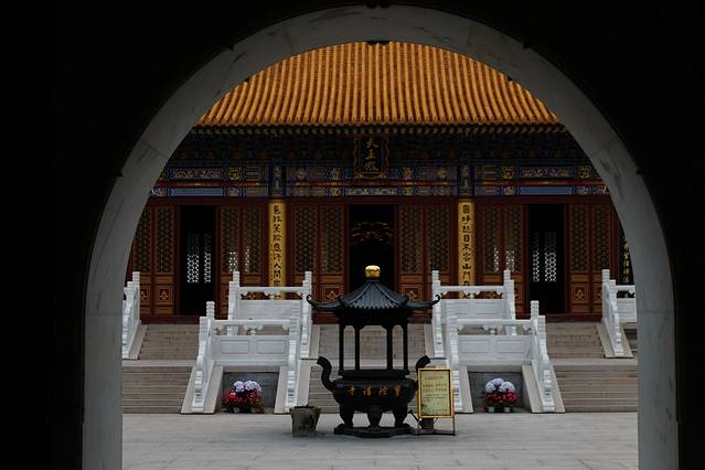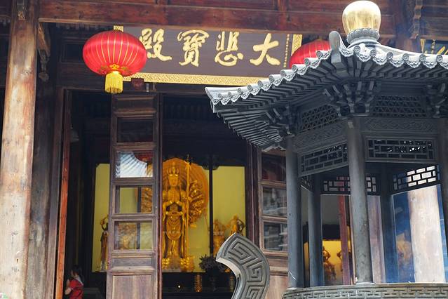 普济禅寺的主殿是大圆通殿,殿内宽敞无比,供奉着高8.8米的毗卢观音,建筑很奇特,“百人共入不觉宽,千人齐登不觉挤”,故有“活大殿”之称。