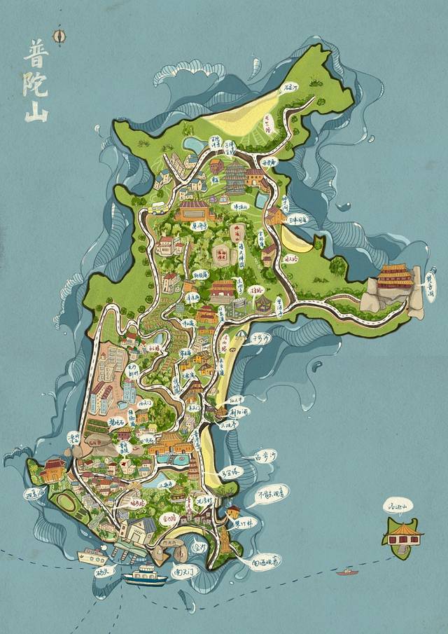洛迦山回来,可以步行去普济寺,沿途看看百步沙。普济寺(建议先不要逛其他地方,因为9:30的船从洛迦山回来,这时候时间差不多10:30了,直奔普济寺的斋房去吃素斋吧)逛完,外面的海印池、御碑亭、天华百子堂、多宝塔院可以慢慢游览。普济寺附近的仙人井、朝阳洞可以去看看,只能徒步来回。