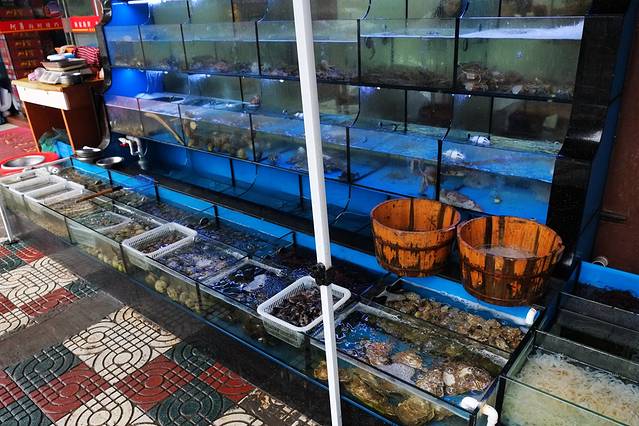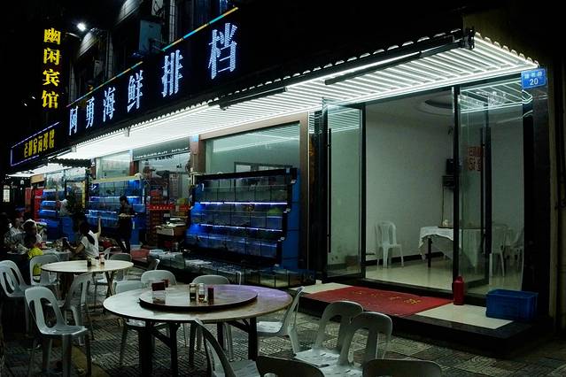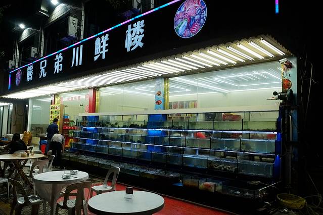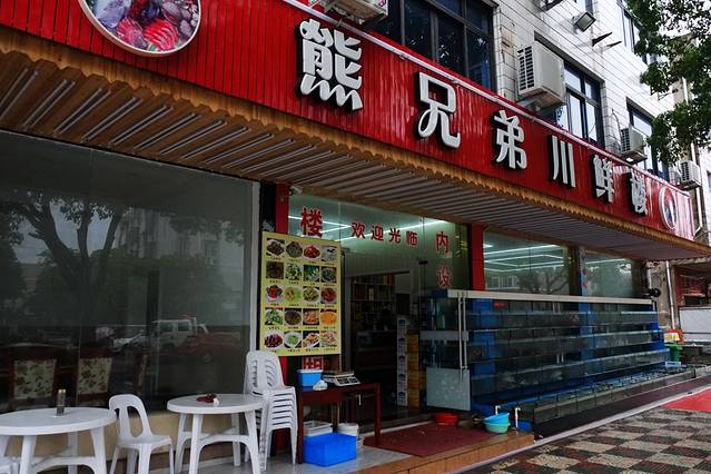朱家尖的莲花路是朱家尖镇的中心,比较繁华热闹,住宿餐饮都集中在这里。这里推荐熊兄弟川鲜楼和旁边的阿勇海鲜排挡,这两家我们都吃过,大众点评评价很高,老板都是退伍军人,陕西的,很实在,老老实实做口碑。不像这里很多饭店不做回头客,就靠流水。朱家尖这里也是,尤其是位置特别好,在街口最繁华地段的那种,宰客特别厉害。拉客的时候说得特好听,价格也便宜,坐下来就不是那么回事了,吃点贝壳类的海鲜,甚至是皮皮虾、基围虾都还好说,要是吃鱼,那水就可深了,不被宰是不可能的。熊兄弟川鲜楼和阿勇海鲜排挡都很不错,明码标价,海鲜也很新鲜,最主要是做的口味也很好吃,就是赶上周末,因为回头客太多,还要等位,这点很不爽。我们本来想先去熊兄弟的,就是因为到的时间人太多,就去旁边的阿勇了,这里也很不错,所以一起推荐了,省得说我做广告。