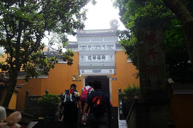 这里传说是为纪念西汉南昌尉梅福来普陀山修道而建的,这里周围林木幽深,古时曾“万树梅花开满岭”,现在也是一个清静修行的好地方。