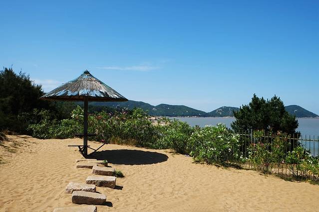 回到法雨寺停车场,路过法雨禅寺(这时候差不多下午四点半,可以继续在法雨禅寺吃素斋,16:30点半开饭,5元),饭后可以去千步沙看看(就在停车场旁边,也就在入口处看看,下海戏水肯定是没有时间了),体力好的可以去杨枝庵看看(这里有三宝之一,杨枝观音碑,但距离比较远,看完还要回来坐旅游巴士,体力差的建议放弃)。