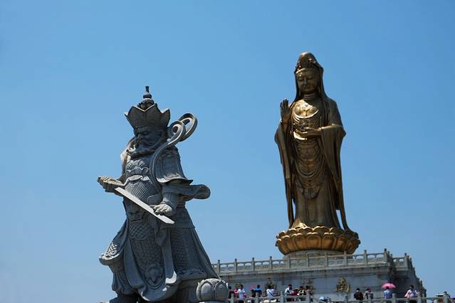 中国四大佛教名山中,峨眉山、九华山和五台山是真正的山,而这座普陀山其实只是一个岛,因为舟山人喜欢把岛叫做山,所以普陀被称之山。当然,普陀山实际上也可以算是矗立在海水中的山。所以,这里也被称为海天佛国,山海同辉的景致和另外三座佛教名山截然不同。
