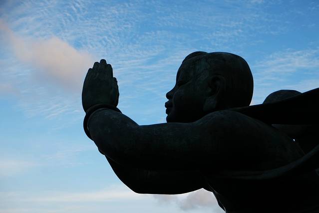 傍晚的短姑圣迹铜像,也显得更加肃穆和恬静,恍惚之间传说和现实有些让人分不清楚。