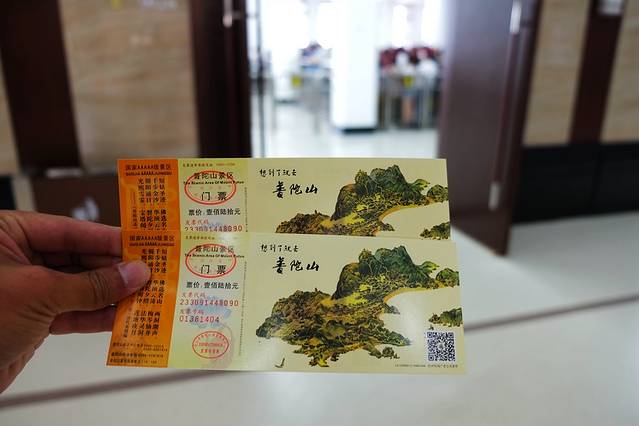 普陀山进山门票根据季节不同价格会有变动,淡季(12月、1月)140元,旺季(2月—11月)160元,每逢节假日(1.1,1.2,5.1-5.5,10.1-10.5,春节初一至初五)票价上浮至200元。购票点可以刷卡,网上购买门票没有任何优惠,旺季建议大家还是提前网上购票,凭短信里的兑换码在景区门票购买点旁的咨询柜台领票,可以避免排队。