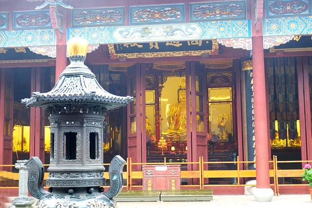 3、普济禅寺。紫竹林停车场坐旅游巴士到普济寺停车场。普济寺里面有8大殿11尊菩萨。分别是大圆通殿的正身观音,求全家平安;文淑菩萨,给小孩子求智慧;伽蓝菩萨,求财;普贤菩萨,求事业;大雄宝殿的三世佛(阿弥陀佛、施迦牟尼佛、药师佛),消灾避难;地藏王菩萨,给老人尽孝道;千手千眼观音,求子;天王殿弥勒和韦陀,求出入平安。这里要注意一下,参拜顺序一定第一个是观世音菩萨,最后一个是韦驼菩萨,其余菩萨顺序不分先后。
