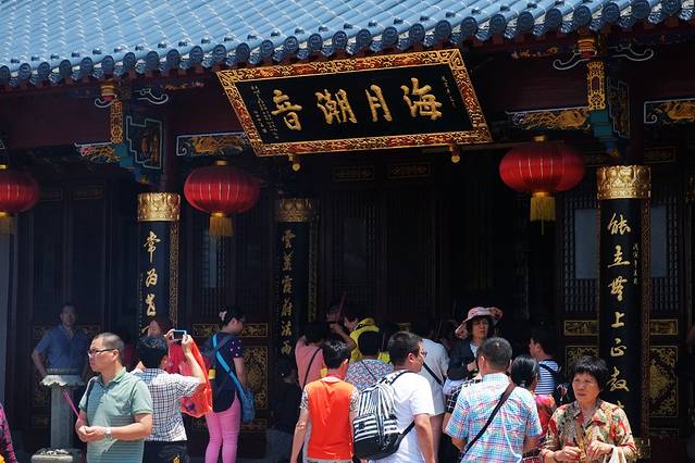 在朝阳洞观海上日出,到潮音洞听海涛声声,在千步沙戏水玩沙,到梵音洞观佛祖显圣,穿梭在大小寺庙的琉璃金瓦和西天景区的绿色遮天的树林之间,掏几元钱到寺院里吃一顿素斋,普陀山纵有诸多的不是,但这一种旅行的感受,即使不是专程来烧香拜佛,却也是其他名胜之地难以享受的雅趣。