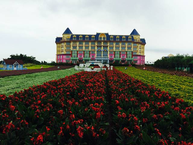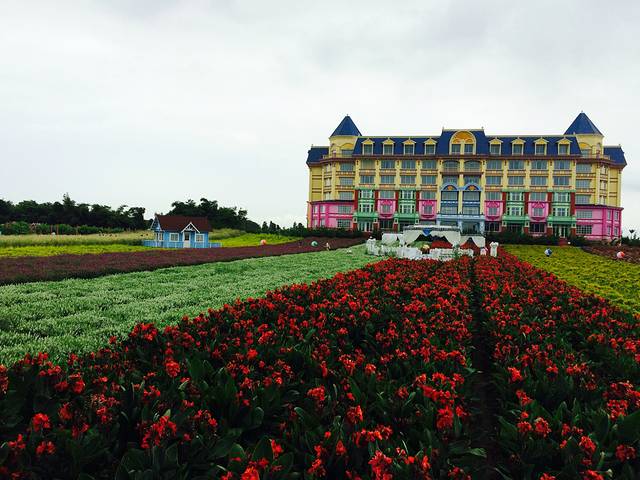 个人认为园内最好看好玩的地方 坐彩虹火车可以绕这些七彩花田一圈