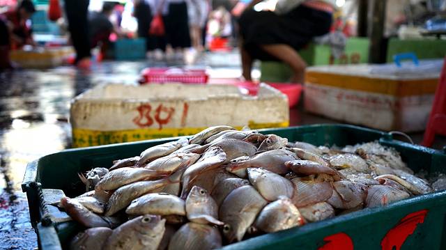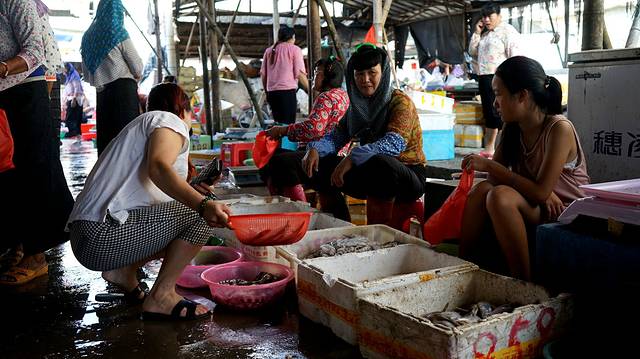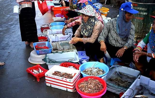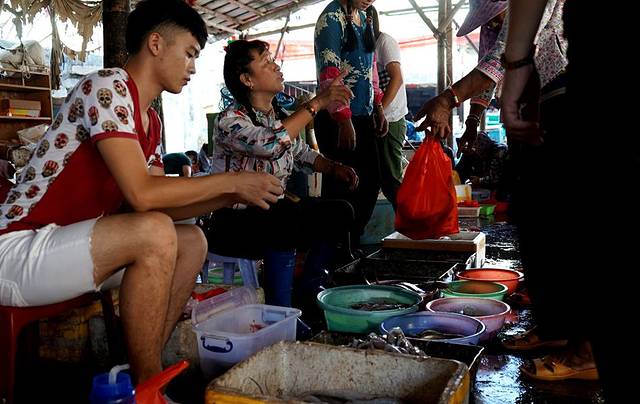 一大早,鱼市上就会出现许多人,十分热闹