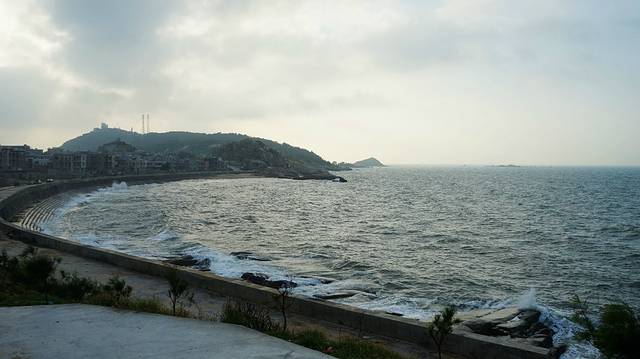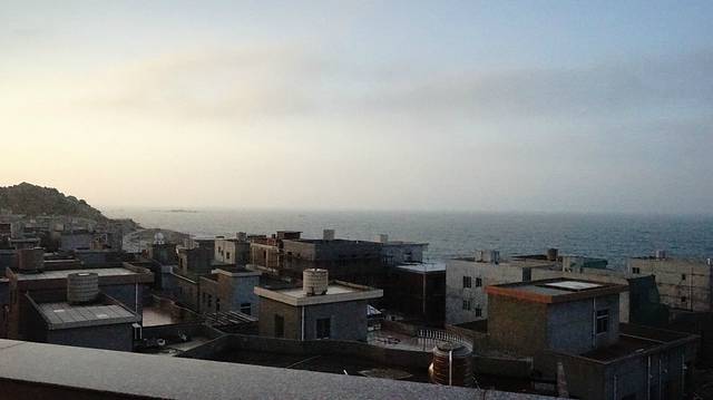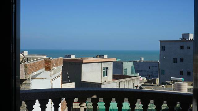 五楼阳台外的风景,这个是我在第二天早上5点多拍的,太阳刚刚出来,海面上还看的不是很清楚!