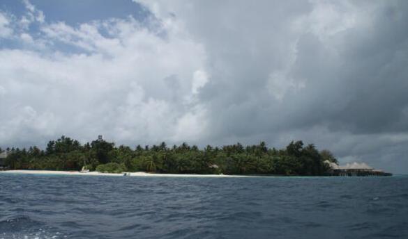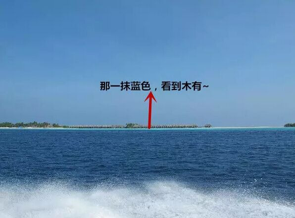 坐着快艇在海上飞奔,吹着海风,20多分钟后,眼前出现一抹淡淡的蓝,没错,那里就是我向往已久的马尔代夫卡尼岛。