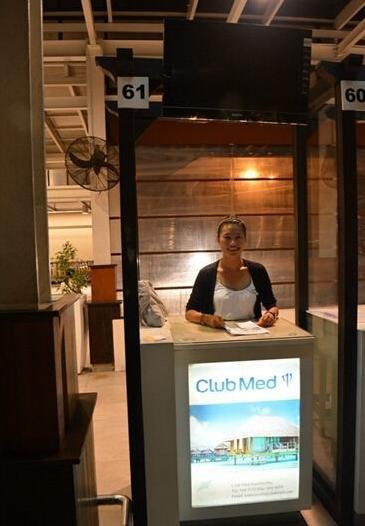 马累机场不算大,当然没有新加坡机场好,但是各种设施还是很齐全的,餐厅、兑换点、ATM机等应有尽有,一到机场就看到ClubMed的工作人员举着牌子在大门等候是极好的,行李他们帮忙搬上快艇,然后另外一位工作人员把我领到柜台,领房卡、手绳,记得要把对应房号的行李绳系在行李上哦~到时候服务员会把行李送到房间,现在呢~等待其他一起前往的客人。