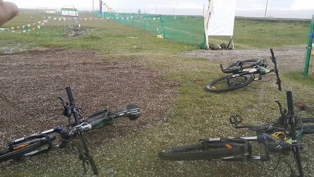 第二天骑行了64公里,中途遇到大冰雹,找个蒙古包吃顿饭,又可以玩,不错