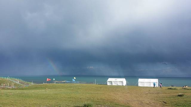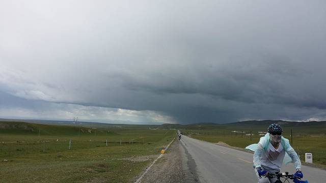 彩虹!但这时是我最累的时候了,75公里环湖西路骑完,接着3公里长坡,又是风雨加冰雹,已经是晚上7点了,还有13公里,我不能停,唱着张宇的雨一直下,咬牙向前冲,这可能是这次骑行最艰辛的时刻。