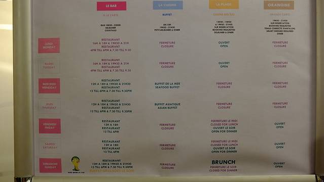 lux酒店的四大餐厅营业时间表,去住的小伙伴可以围观一下