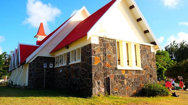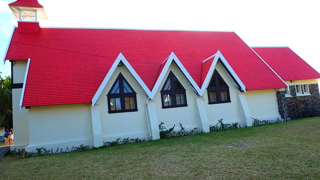 毛球北岸有一处离岸观赏岛上景色的地方,叫做米尔考恩海岬,走过海岬,有一个小小渔村,叫马勒勒角(Cap Malheureux),著名的红顶教堂(Notre Dame Auxiliatrice)就在这里。