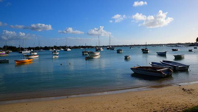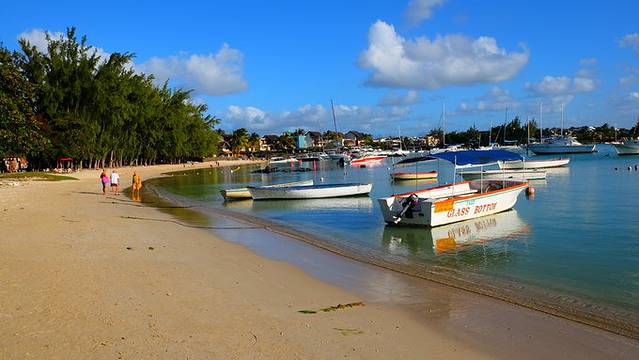 傍晚的大海湾(grand baie)沿岸关于大海湾:大海湾意思是无尽的海滩,据说这里是水上活动很丰富的地点,可以在这里选择双体船一日游,还有的公司会提供半潜水式的船去看珊瑚。