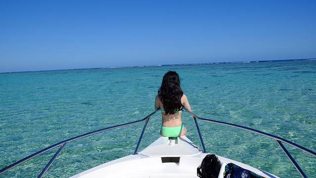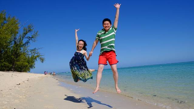 关于鹿岛:鹿岛,因为曾经有少数的牡鹿栖息,所以得名,我们当时问酒店的服务员dear island怎么走,他想了一下,眉毛一挑,啊,你们说的是伊露瑟夫(音同)吧,然后我们就记住了这个名字很好听的岛,虽然那里推销水上项目的小黑哥很多,他们也基本都掌握了中文“瀑布”“龙虾”“降落伞”发音,但还是要承认,那是个很清澈的小岛,海水颜色更淡,像对面毛球海的颜色,这个岛海岸线很长,走远一点,就可以找到你私人的拍照角度,完全没有人。听说这个岛上有属于高大上酒店Le Touessrok的18洞高尔夫球场,被称为世界上风景最美的高尔夫球场(没办法,我对最高级的表达和词汇总是抵挡不住)
