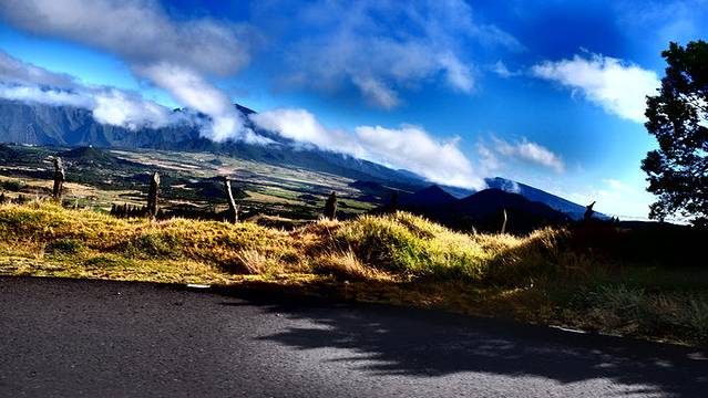 车子慢慢走高,已经隐约可以看到远处被云层遮盖的火山