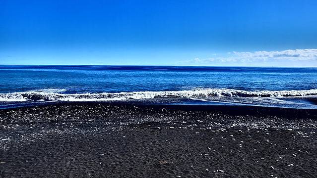 作为一座海岛,首先,它必须有海滩与海浪的必要元素,因为这里是成型尚晚的年轻小岛,所以它并不像马代水清沙幼,拥有大面积的瀉湖浅滩,它的沙质粗粝,海浪巨大。这是St-Paul集市边的黑沙滩,浪袭来时候,裹挟着深色的沙土朝你而来,有一点点汹涌,有一点点可怖,非常tough。
