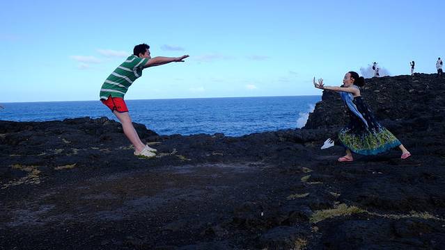 攻略里很有名的自然桥,不过基本上不用查找地图了,看它如此随意随性的一个名字,就知道是当地人随便取的了,导游告诉我们,这是他们公司刚到毛球之初,不带团的空闲日子瞎走瞎逛,偶然误入山间发现的一个宝地,然后各大旅行社就都来了,汗。。。怪不得很有中国特色的被称为“毛球的天涯海角”,不过真的很壮观,no zuo no die的小伙伴们也可以带着婚纱和好摄影师来这里,很wild heart的。