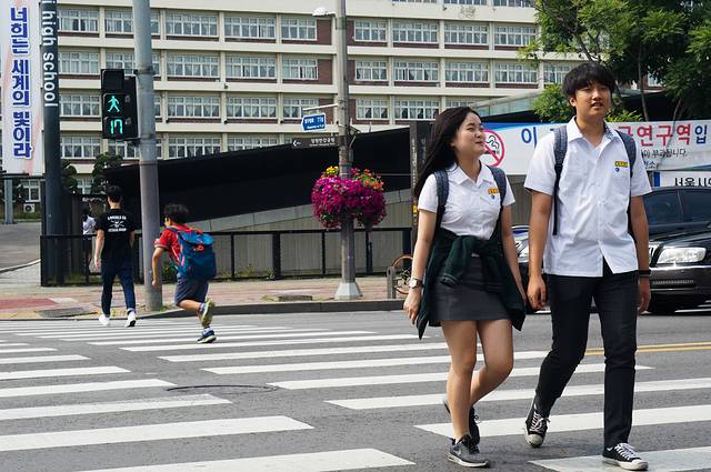 上图,马路对面是初中正门,恰逢放学时间~~!!