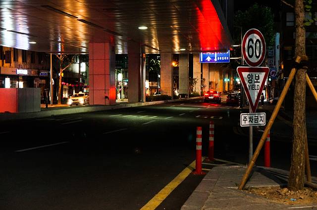 街道很干净,地上没有烟头,指示牌亮的好似没有灰尘~~