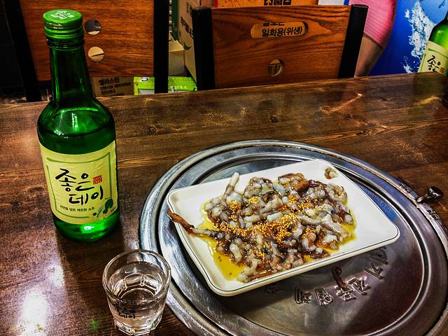 醉了就会话多,之后在一家沿街宠物店的玻璃橱窗前,一名恰巧路过打扮时髦的瘦瘦韩国大妈对着我巴拉巴拉的讲韩语,我则对着她巴拉巴拉讲日语,互相都听不懂对方在说什么,半蒙半猜就这么交流了5分钟有余……现在想想真是有够搞笑……