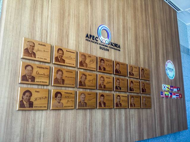 APEC会场周边有很多绿树成荫的走道,环境很不错,离海云台很近。