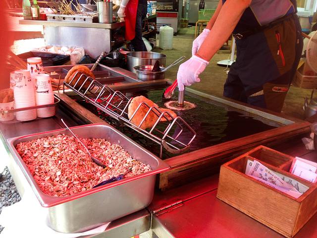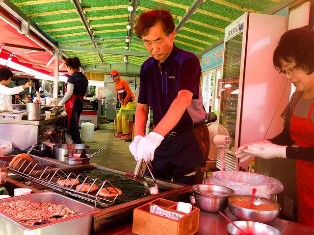 摊主老阿姨很热情,但我一句也听不懂~~看着我俩吱吱呀呀的奇特交流~~这位大肚子大叔(客人)实在忍不住,用很难辨别的日语帮忙招呼偶 --|||