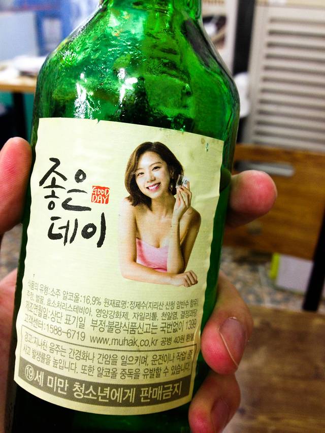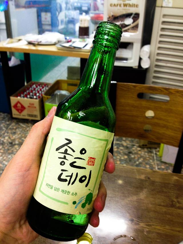 16.9度的韩国烧酒。店里有3种烧酒,老板推荐说这种,偶一看logo女主有事业线,当即就要了这个……口感不错,360ml一瓶下肚后有点小醉~~哈哈哈~~